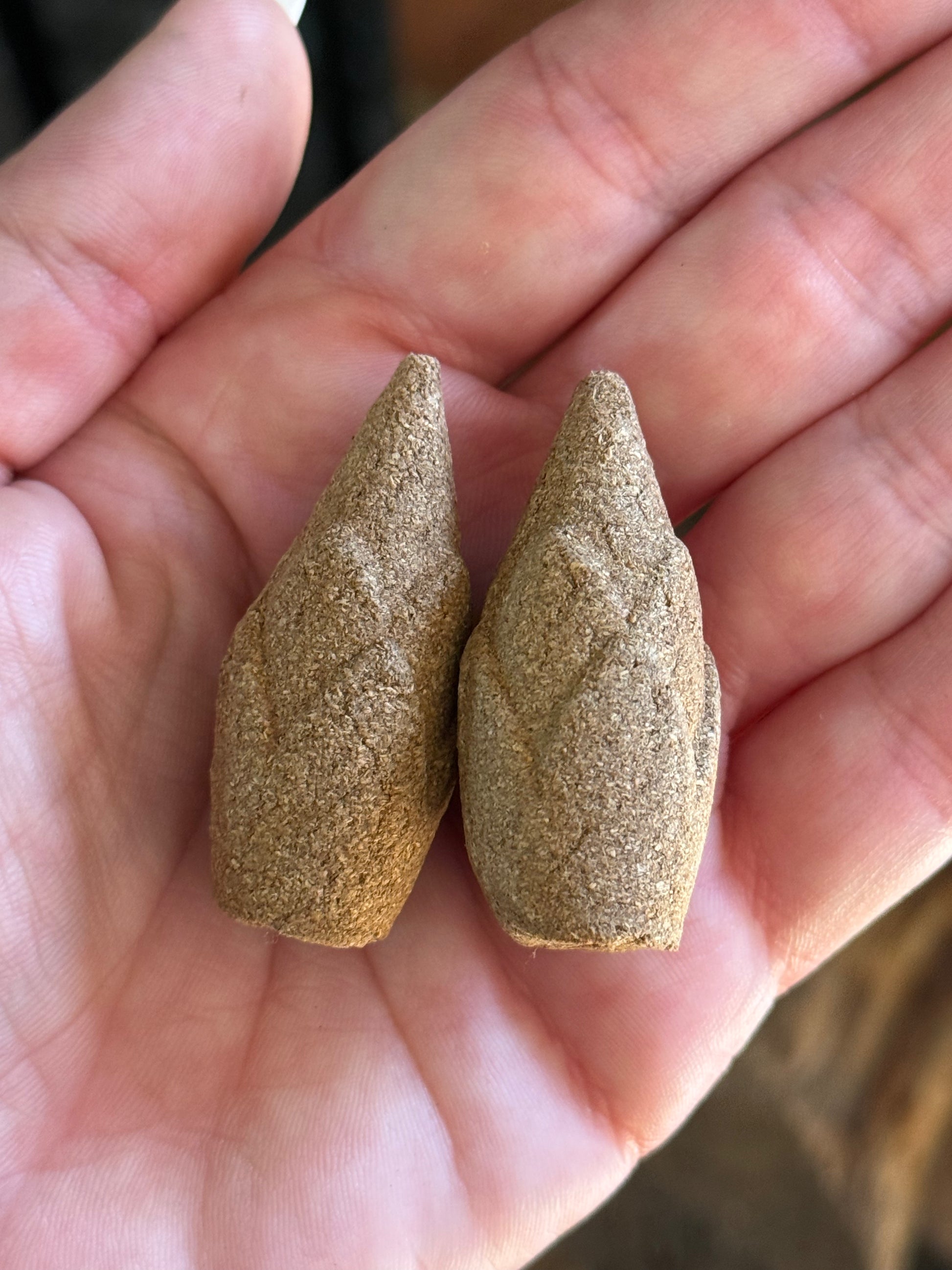 Each cone is hand-formed and pierced for backflow use, resulting in subtle variations in shape and texture. Their substantial size makes them ideal for longer meditations, cleansing rituals, or moments when a space needs more than a quick clearing.