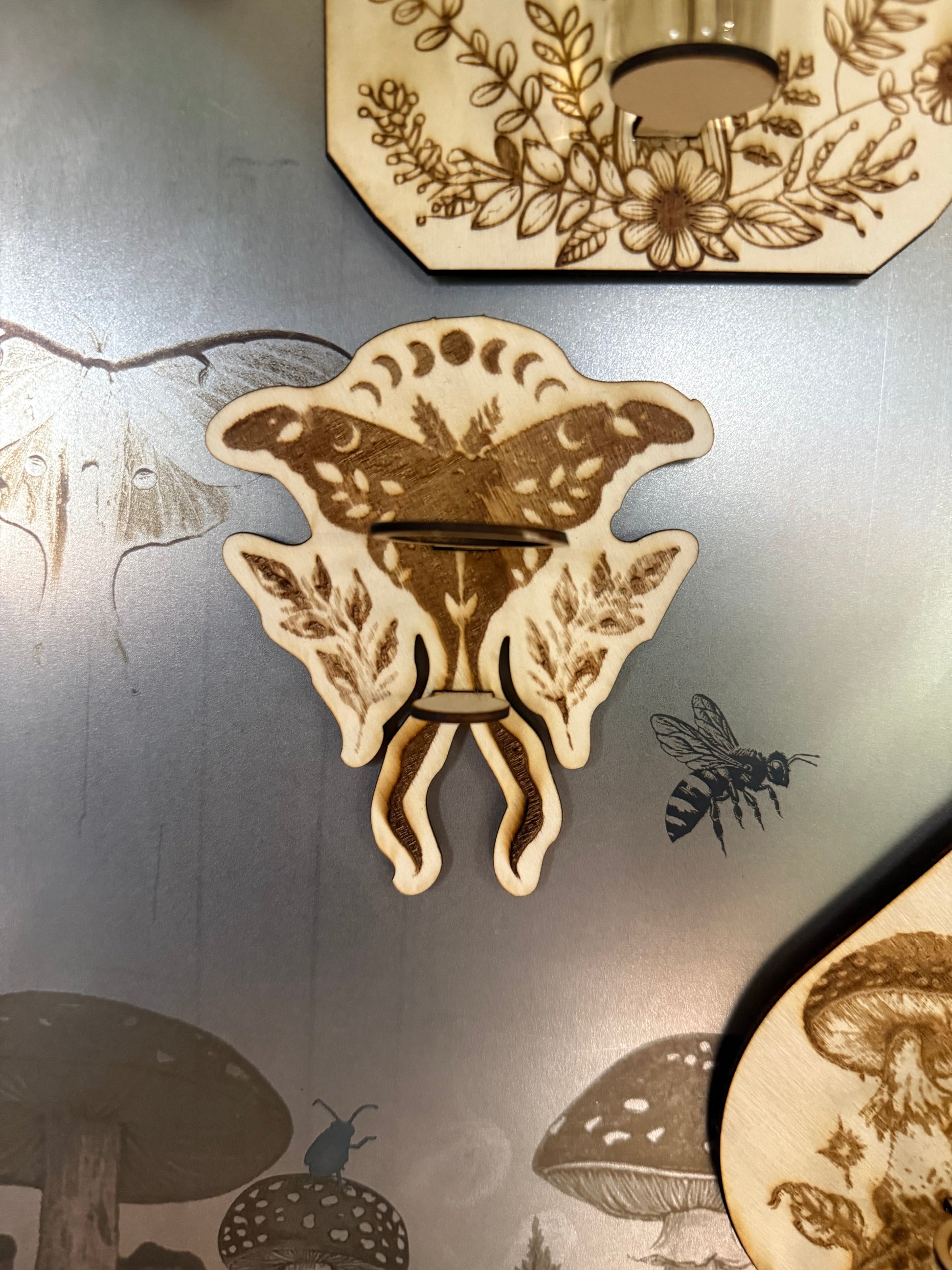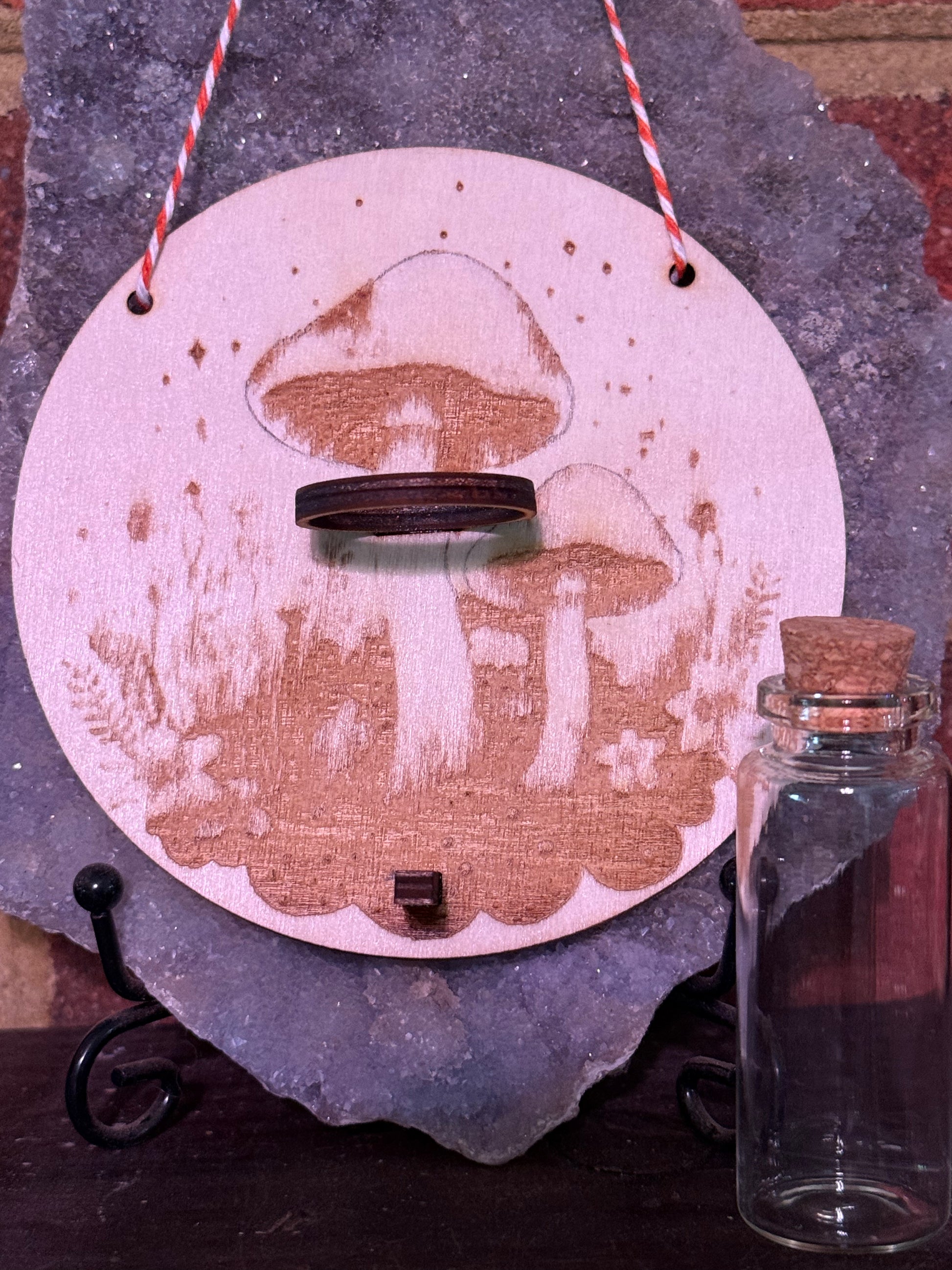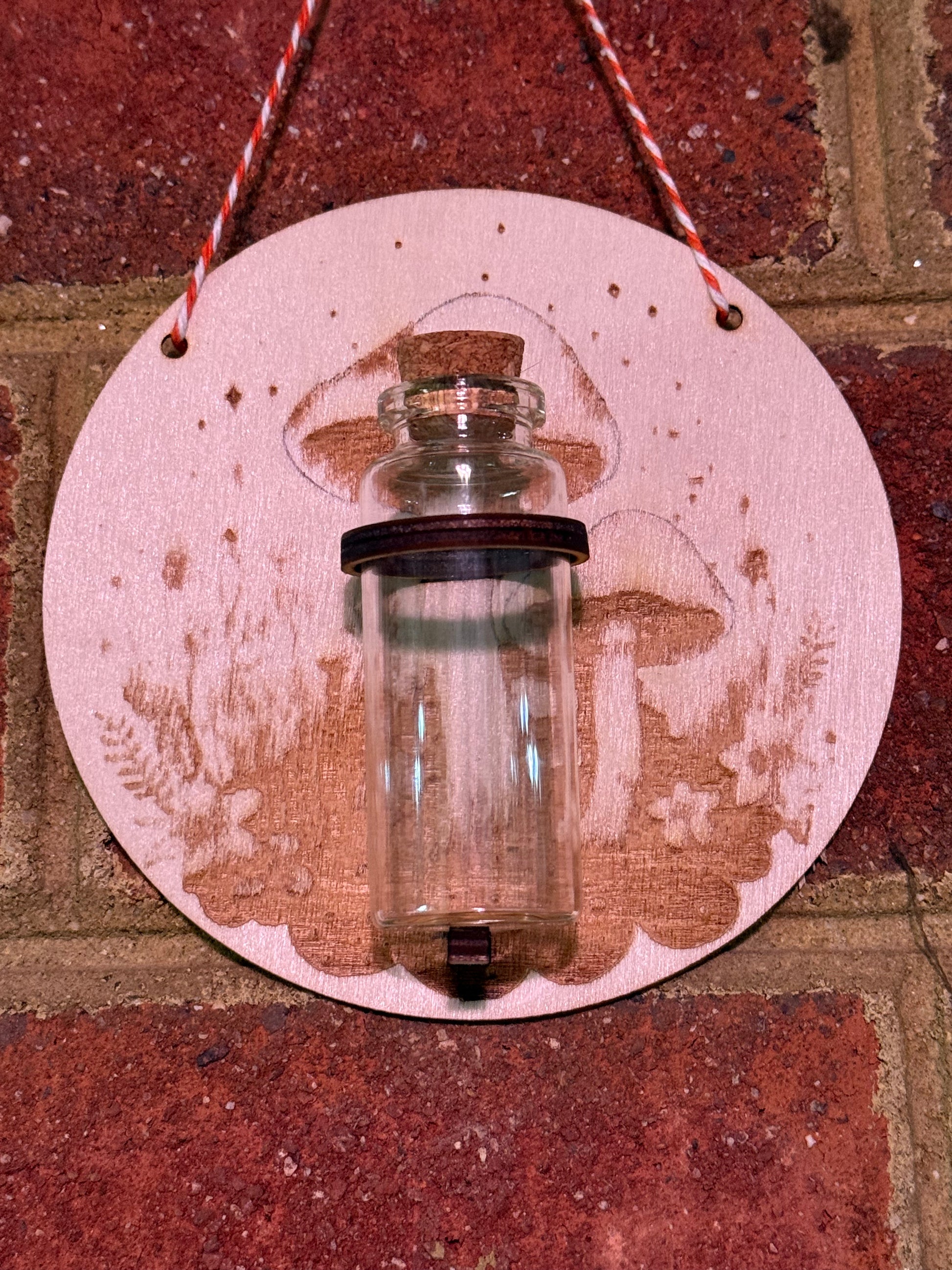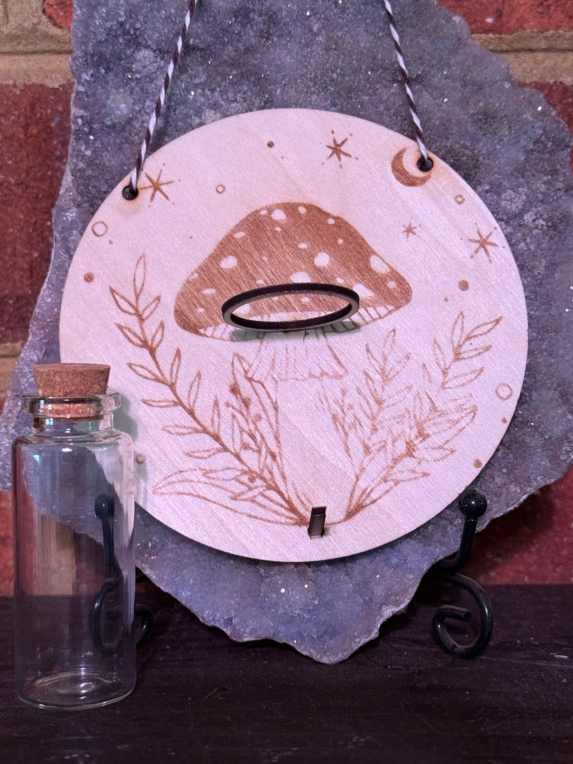 Each one is laser-engraved with woodland and celestial imagery, then paired with a delicate glass vial—creating a small but powerful space for growth, intention, and quiet magic.