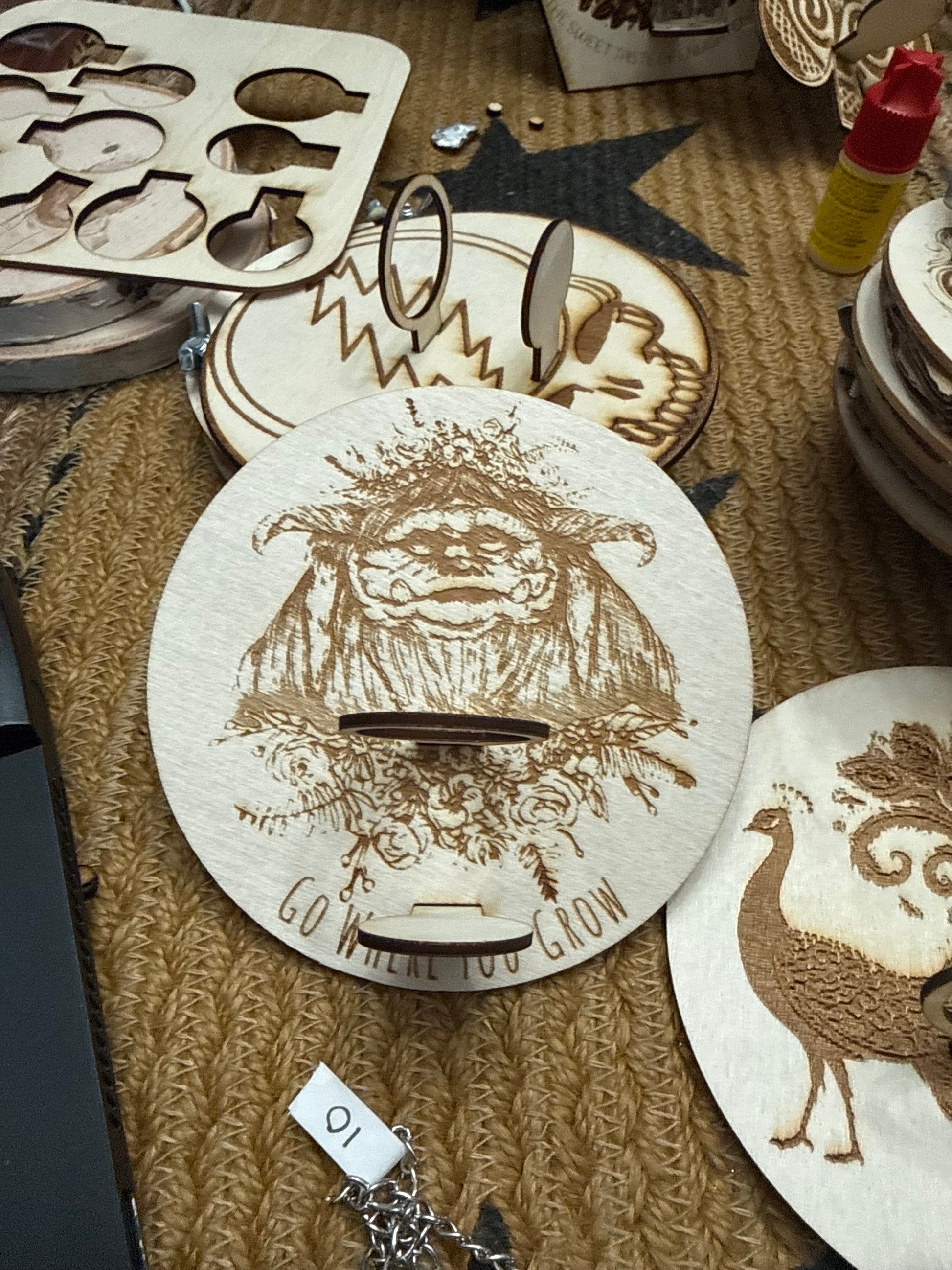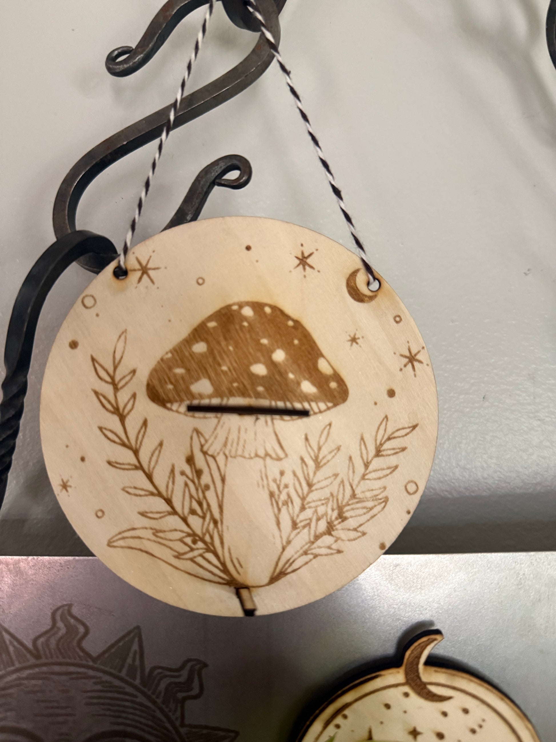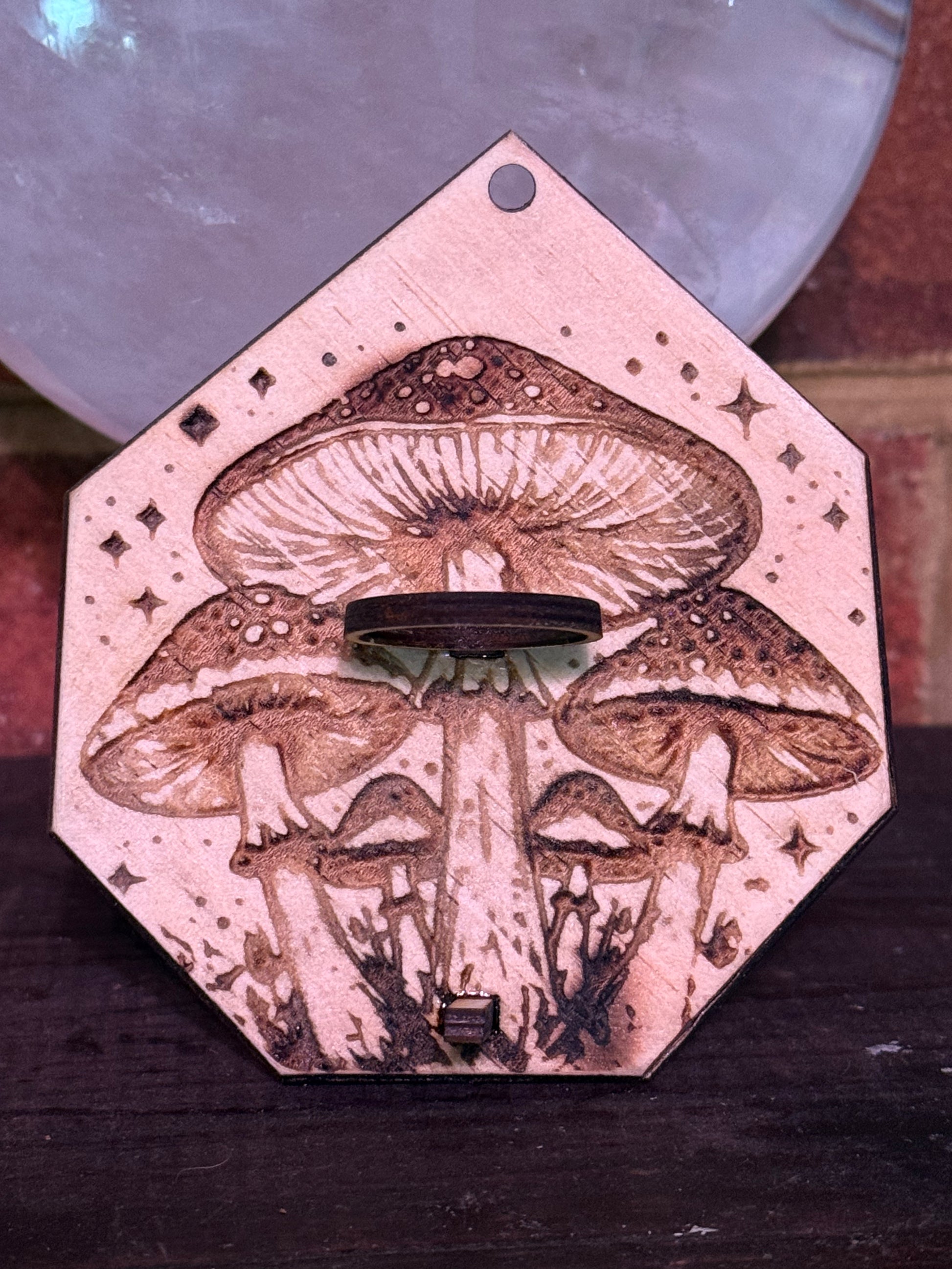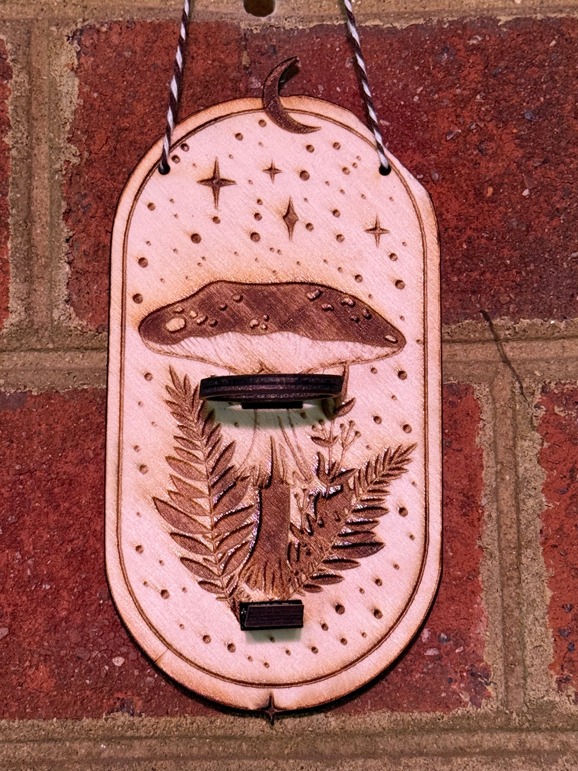 Each one is laser-engraved with woodland and celestial imagery, then paired with a delicate glass vial—creating a small but powerful space for growth, intention, and quiet magic.