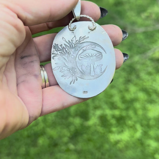 Hand-forged in sacred stillness and born from the alchemy of earth and spirit, this one-of-a-kind pendant is more than adornment—it is a vessel of power and intention. Created entirely by hand from recycled sterling silver, it carries the raw breath of the sea and the hush of moonlight woven into metal.